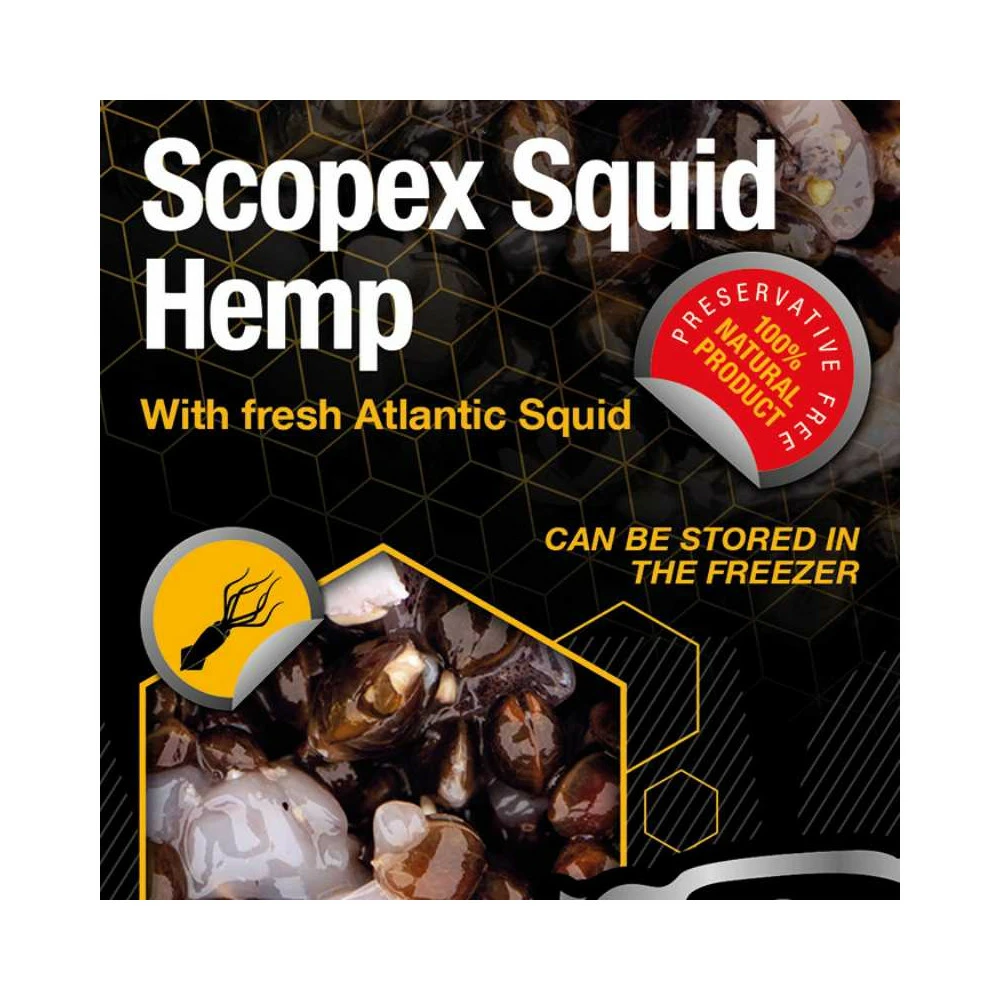 Chènevis de grande qualité française. Boosté par le légendaire arôme Scopex Squid et mélangé à du calamar pur de l’Atlantique.